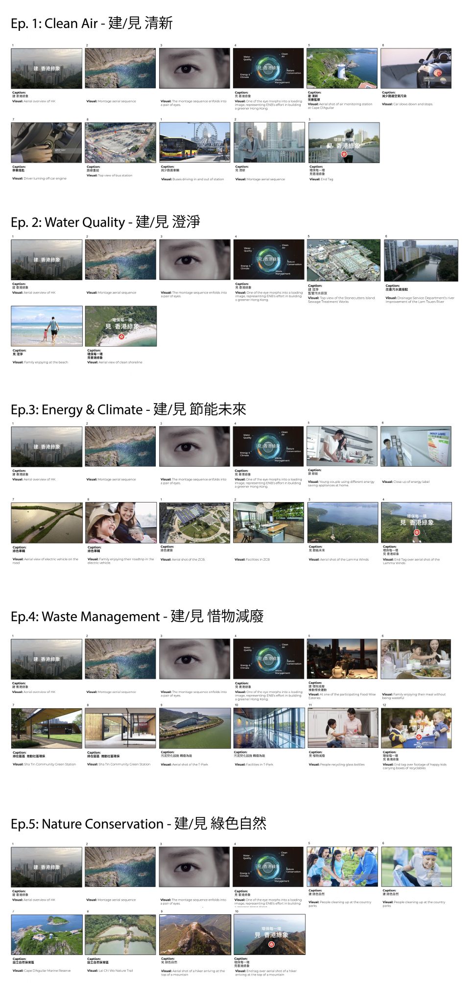 我們利用 2D 和 3D 動畫簡單地說明了環境局「建設」了空氣清新、珍惜資源減廢、清理海港、生態保育和減廢減碳的五大範圍,並把這個訊息傳達給觀眾。